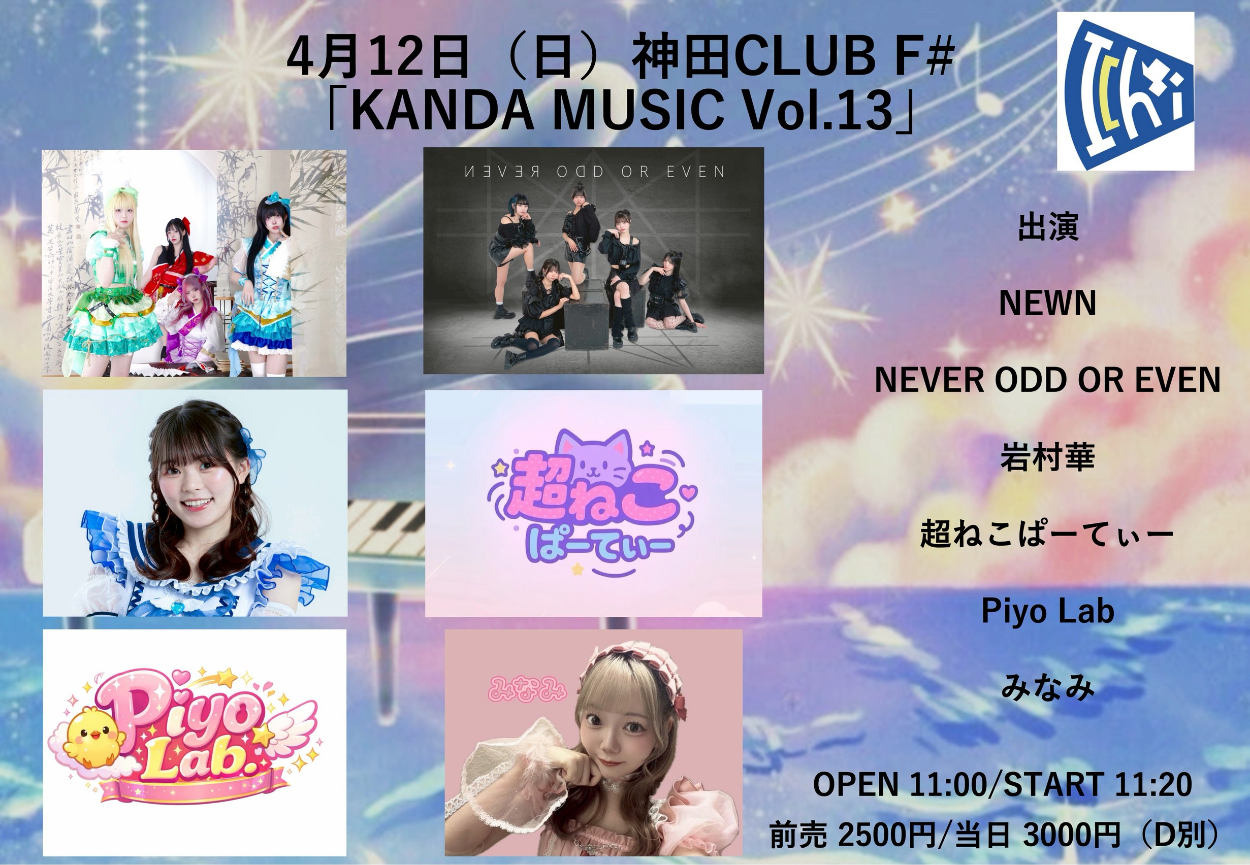 出演:NEWN / NEVER ODD OR EVEN / 岩村華 / 超ねこぱーてぃー / Piyo Lab / みなみ / etc